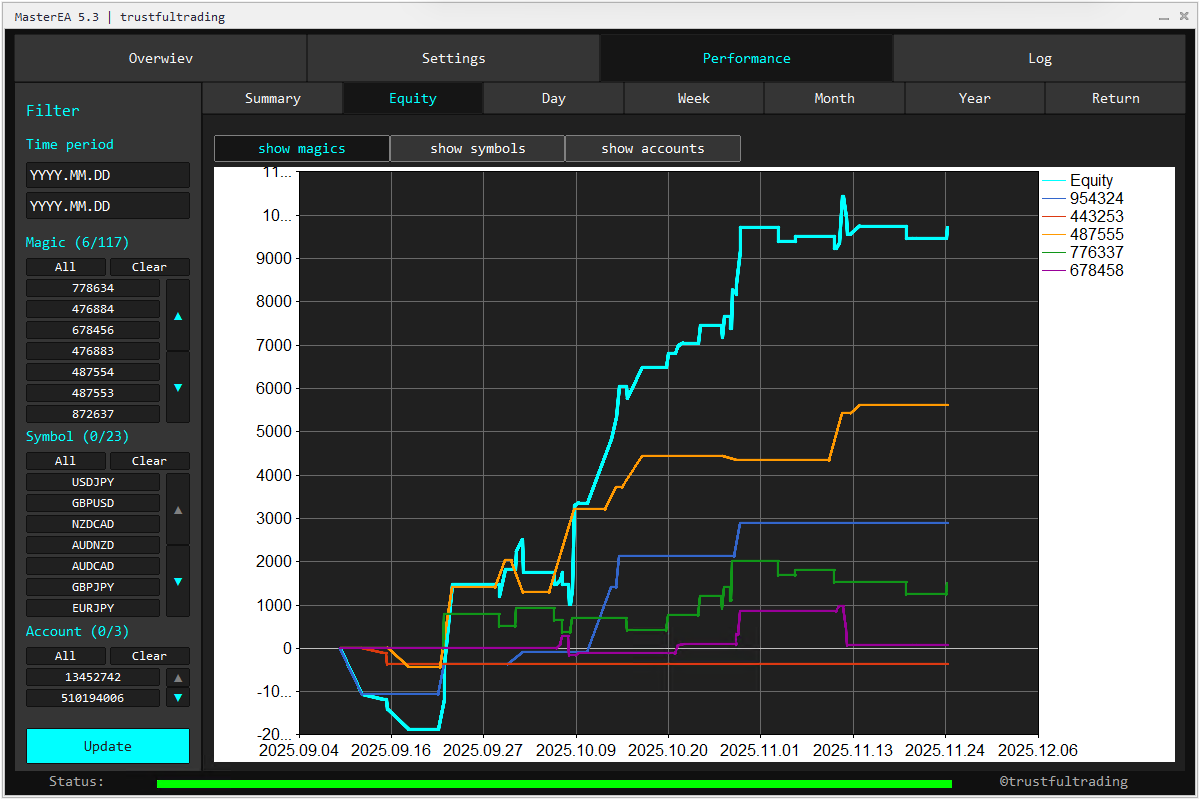 Most automated systems fail because they over-optimize for the past. MasterEA is built on robust, first-principle trading concepts designed to survive changing market regimes.